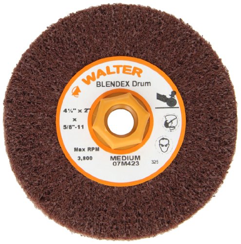 - Product Name: Walter Blendex Linear Finishing Abrasive Drum, 3800 Maximum RPM, 4-1/2" Diameter x 2" Width, 5/8"-11 Arbor, Grit Medium